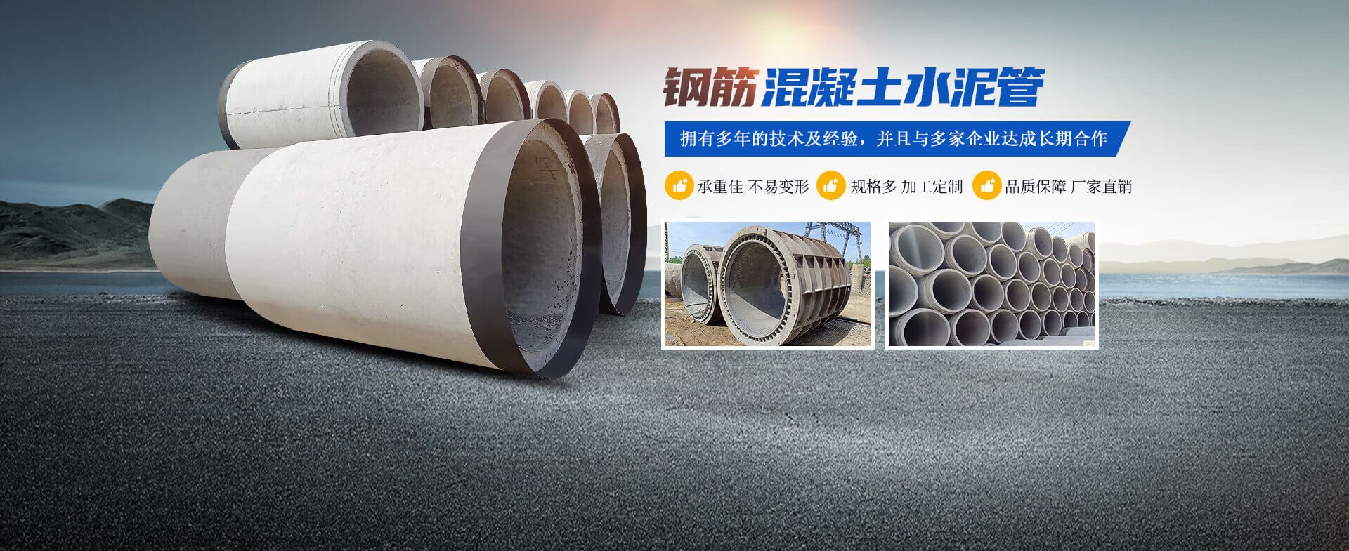 洛陽(yáng)運(yùn)曌建筑材料有限公司專于從事水泥制品開(kāi)發(fā)、制作、生產(chǎn)、銷售、工程服務(wù)為一體的綜合性企業(yè)。主要生產(chǎn)鋼筋混凝土排水管、鋼承口頂管、承插管、平口管、雨污井蓋、路沿石、水泥預(yù)制板、仿木圍欄護(hù)欄系列、畜牧系列等混凝土水泥預(yù)制品。  我公司生產(chǎn)的鋼筋混凝土排水管是依據(jù)執(zhí)行標(biāo)準(zhǔn)GB/T11836-2023生產(chǎn)檢驗(yàn)、擁有三條懸輥工藝生產(chǎn)線;型號(hào)300-3000;年生產(chǎn)能力達(dá)30000米左右,質(zhì)量是企業(yè)之本.........了解更多>>